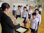 今日児童集会がありました。最初に俳句の校内入賞者を表彰し、次に児童委員会の任命式がありました。その後、「世界がひとつになるまで」を歌い、児童会が提案し楽しみにしていた「だるまさんがころんだ」と「こおりおに」をしました。この時は子どもたちが最高潮で、みんなの笑い声が体育館に響いていました。最後の感想発表でも全員が手を上げていました。