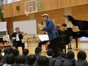 今日の午前中に門前中学校にあったコンサートに行ってきました。青島広志先生とアンサンブル金沢のメンバーの演奏会でした。生の演奏を聴く機会がないので、近隣の小学校も参加しました。大勢集まりましたが、みんな静かに演奏に耳を傾けていました。