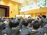 最後に各学校の校歌を生演奏で歌いました。三井小学校の校歌も子どもたちは大きな声で元気に歌うことができました。