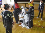 土曜授業の3限目に外国語活動がありました。毎年この時期はハローウィンパーティーで地域の方を講師として英語を学んでいます。今回も子どもたちは、それぞれに工夫を凝らし変装して参加しました。その中で英語と使ってゲームをしたりビデオを見たりして楽しみながら英会話を学ぶことができました。