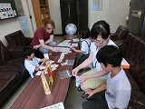 もう一方では、ほかの1年生が計算カードを校長先生と練習しています。毎日の繰り返しでスラスラと答えられるようになりました。