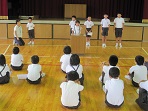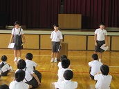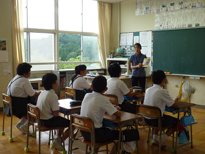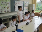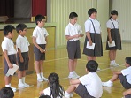 4限目に一学期の終業式がありました。最初に駐在さんから休み中に気をつけることをわかりやすく教えて頂きました。次に、校歌斉唱、校長先生の話の後、各学年代表が夏休みに向けての目標を発表しました。子どもたちにとっては、少人数とはいえ全校の前での発表にはみな緊張ぎみでした。