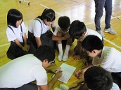 5限目に講師を招いて全校で新聞の切り抜き方を学びました。