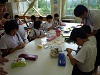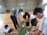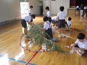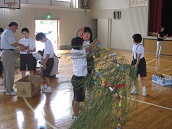 午後からあての木園の方を招いて七夕集会をします。4限目にその飾り付けをしました。以前につくった物を付けようとしますが、思い通りに取りくけられなくて子どもたちは四苦八苦していました。