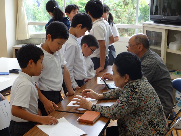 5限目に地域の先生3名を招いて俳句教室をしました。最初に季語を再確認し、それぞれの思いでいくつかつくっていきました。そして、俳句の先生と相談して一つの作品を選び短冊に書き上げました。2年から6年は昨年も取り組んでいたので、素晴らしい作品が沢山できました。