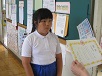 5月に校内の俳句屋に投稿された俳句の校内入賞の表彰が給食後に行われました。1年生と5年生、6年生の3名が選ばれ一人ずつ校長先生から賞状をいただきました。その様子を見た中学年は6月の投稿に意欲を燃やしているように感じました。