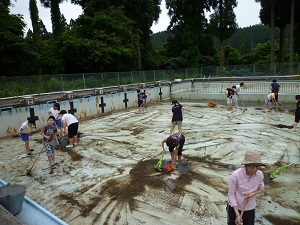 金曜日の5・6限にPTAの環境委員会の方と3~6年生でプール掃除をしました。暑くもなく寒くもなく作業するに心地よい天気でした。前もって水をぬいてあったので、底にたまった落ち葉や砂をブラッシで綺麗に洗い流し、残った水をバケツリレーで出していきました。普段しない作業ですので子どもたちは喜んで体を動かしていました。PTAの方はそんな子どもに目もくれずに一生懸命に作業に取り組んで頂きました。約2時間という作業でしたが、みんなよそ見をすることなく集中しての作業となりました。
