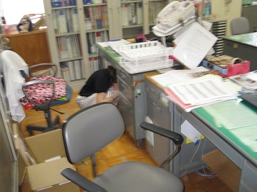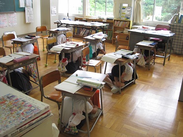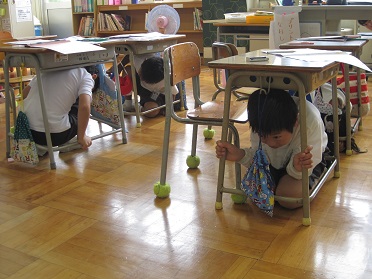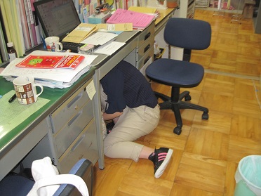 「ただ今、強い揺れの地震が発生しました。自分自身の身の安全を確保するため、揺れがおさまるまで各自で安全行動を実施してください」との放送で学校でも1分間実践しました。