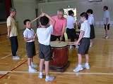 6限目にクラブ活動がありました。体育館はとても暑かったですが、3名の地域の先生からバチの持ち方や腕の上げ方など習い、子どもたちは一生懸命に練習をしました。