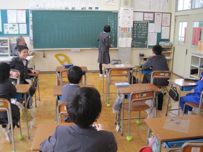 給食後に書き初め大会の表彰がありました。金賞として低学年は岡田君、中学年は池上君、高学年は山下君と萩野さんの4名が賞状を頂きました。