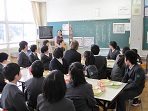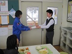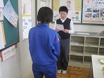 給食後に冬休みの宿題であった年賀状コンクールの表彰をしました。企画委員会の委員長から入賞者の代表に賞状が渡されました。