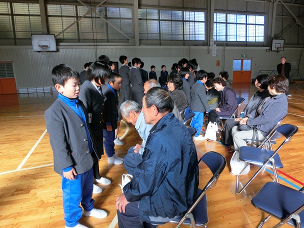 低学年は合唱や合奏、中学年は詩吟も披露して、地域の方から大きな拍手を頂きました。給食では「おいしい」とか「安い金額で食べれるので驚いた」などの感想がありました。最後に鉢植えと写真等をプレゼントをしてお別れしました。送迎のバスでは子どもたちが玄関前まで見送りに出てバスが見えなくなるまで手を振っていました。
