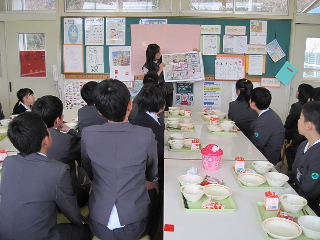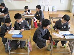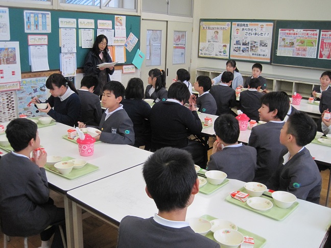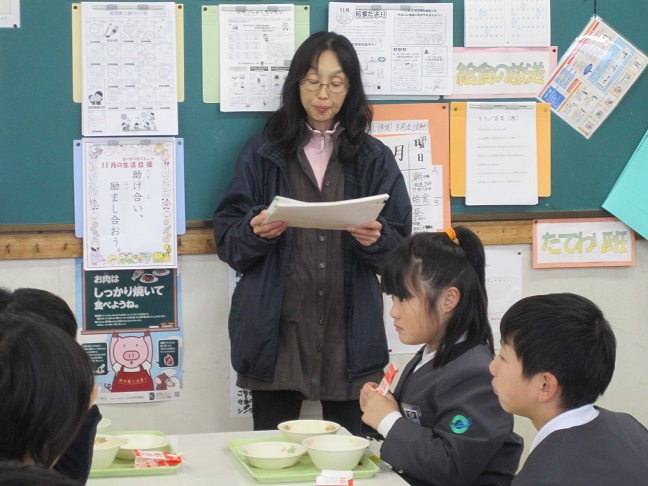 食の時間に子どもたちが書いた作文を先生が読み上げて紹介しています。行事の活動中に思ったことや新聞やテレビニュースで考えたことなど多種多様な内容で、聞いていてもそれぞれの成長過程がよく理解できるものとなっています。学校ではいろいろな作文を紹介することによって、文を書くことに興味・関心をもってくれればと願っています。