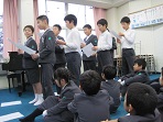 5限目に詩吟教室をしました。2ヶ月に1回のペースで「富士山」と「弘道館」を練習してきました。中にはもう原稿を見ないでうたえる児童もいます。最初、寒いせいもあってなかなか声が出なかった児童も、最後には大きな声でうたうことができました。今日は各学年で順にうたったり、個人の希望者に前に出てうたったりして今年、最後教室を終えました。