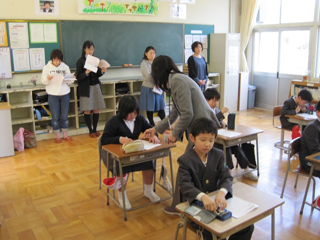 今日6年生は1限から4限目に国算A・国語B・算数B・理科のテストをしました。朝から緊張の連続で、4限目終了のチャイムが鳴ったときには開放感に満ちあふれた顔をしていました。