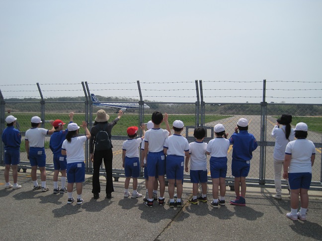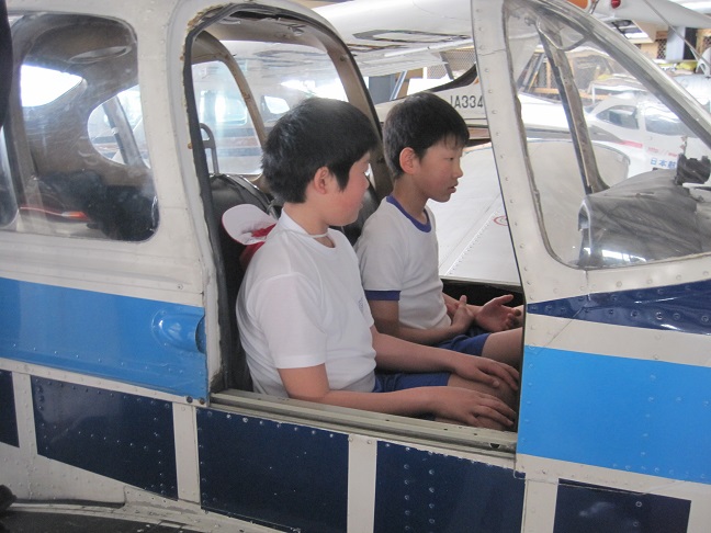 航空学園では滑走路のすぐ側で飛行機の飛ぶ様子を見たり、留学生との交流会では、一人ずつ自己紹介をしたり、いろいろな国の場所や言葉などを聞くなど世界の勉強をしました。食堂では高校生が食べるメニューと同じものを食べました。