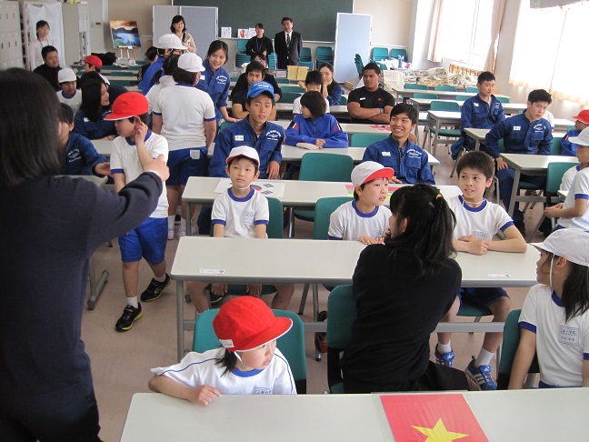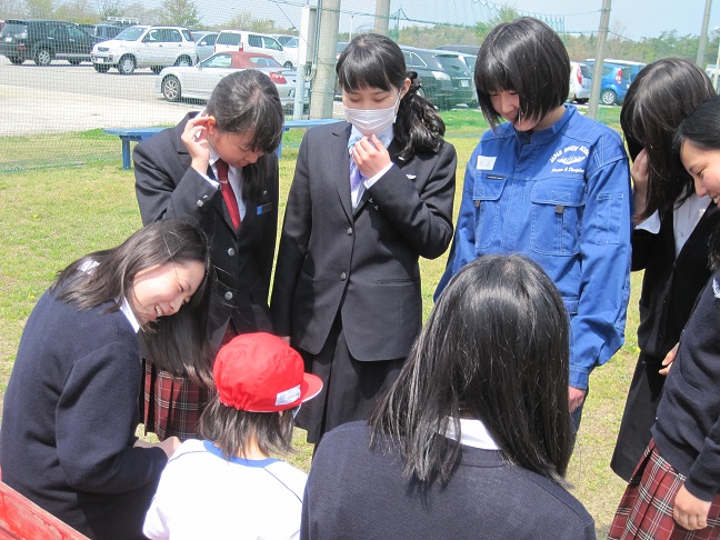 自由時間には、高校生が子どもたちの側に行ってよく話しかけていました。小学生は普段話をすることがない高校生といろいろな話をして喜んでいましたが、高校生はそれ以上にとても楽しそうでした。