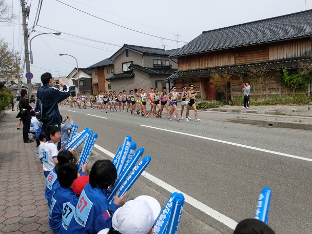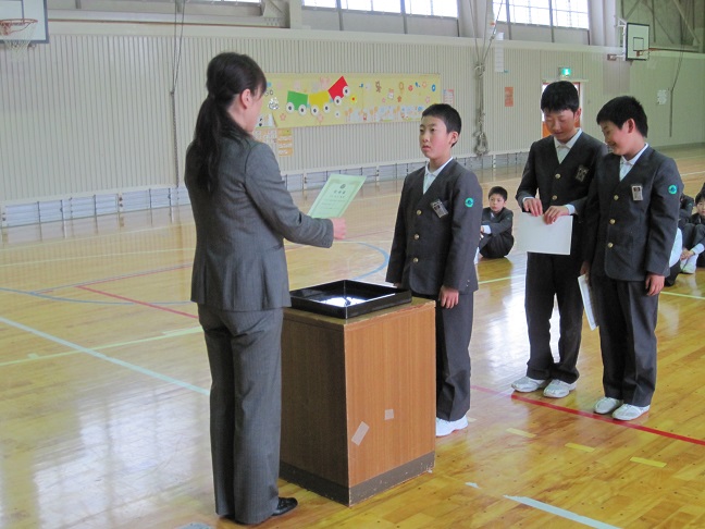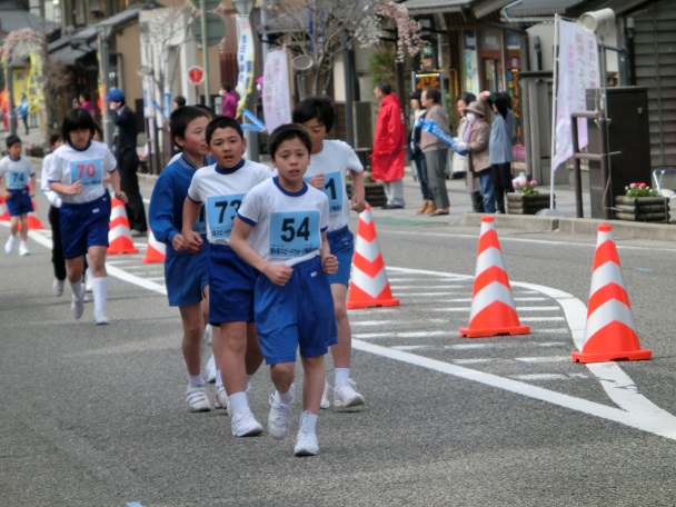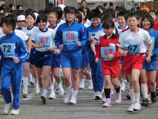 2015年4月20日 11時48分 18日午後、6年生がスピードウォークに参加してきました。最初に一般の方の応援に朝を流しました。寒い日でしたが、子どもたちは選手の歩きに感動したのか、大きな声を張り上げて一生懸命に応援していました。その後、市内の全6年生が参加した小学生男子部で松本君がトップでゴールできました。結果として松本君と山本君の2名が優秀フォーム賞を獲得することができました。