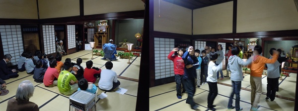 あえのことの最後に,練習してきた「田切唄」「仁行おけさ」を田の神様に披露しました。