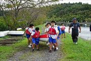 午後、能登少年自然の家へ到着し、河川活動(3人乗りボートとUFOボート)をしました。習うより、自分たちで学ぶことの方が多いようです。