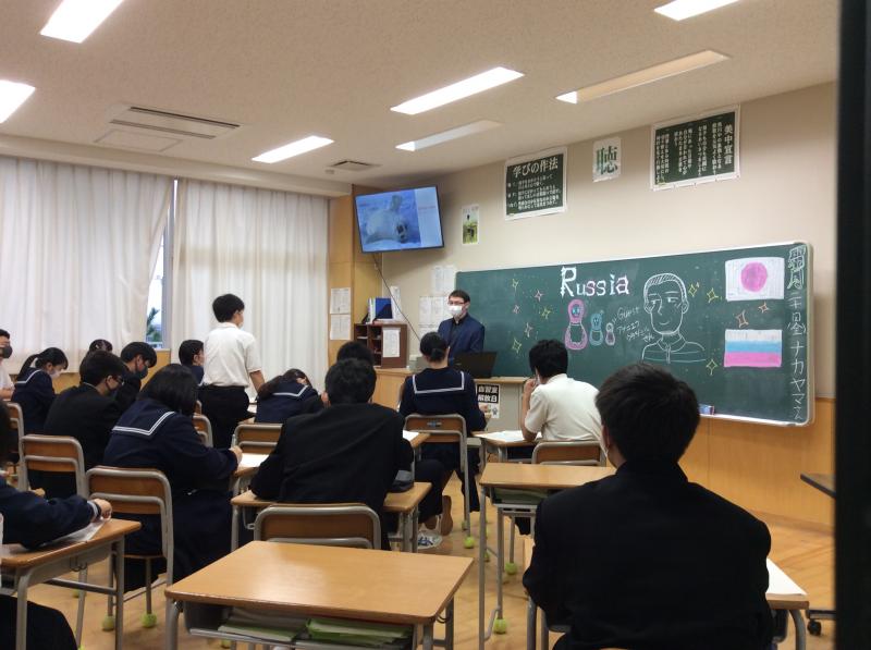 今日の午後、3年生は石川県国際交流協会の方をお招きして、国際理解教室を開催しました。1組 韓国、2組 ブラジル、3組 イギリス、4組 ロシア、とそれぞれ異なる国の方に来て、国の歴史や文化、食べ物のことなどクイズを交えて紹介していただきました。生徒達は事前に調べたり予想したりしていたこととの違いを楽しみながら、興味深く聴いているようでした。