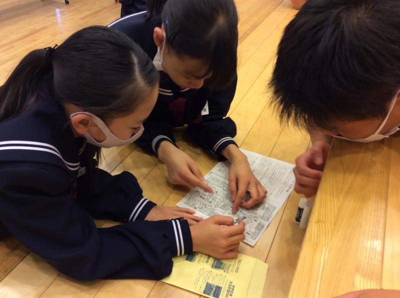 1年生の国語の時間に、読解力を高めることを目的としたなぞ解きゲームに挑戦しました。読んだ文章とイラストをもとに、班ごとになぞを解き、1つ正答するごとに次のステージへ行くための封筒を渡されます。これを繰り返し、できるだけたくさんの問題を解くように競います。どの生徒も夢中になって何度も文を読み直し、正答を得ようと一生懸命に取り組んでいました。最後に「楽しかった!」「またやりたい!」という声が聞こえました。