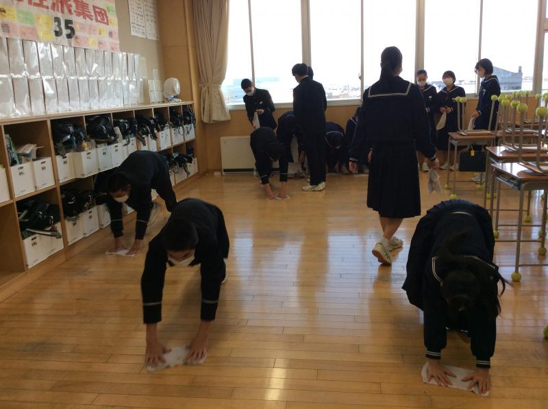 1・2年生の清掃の様子です。今日は日差しがあり、気持ちよく取り組むことができました。とても丁寧に掃除している生徒がいました。