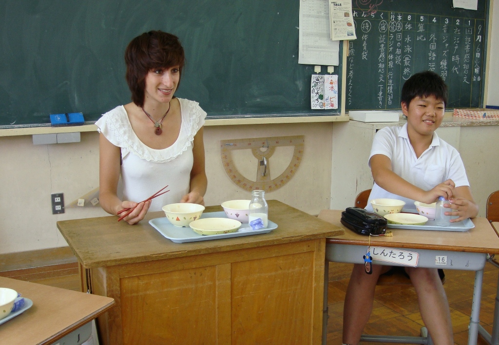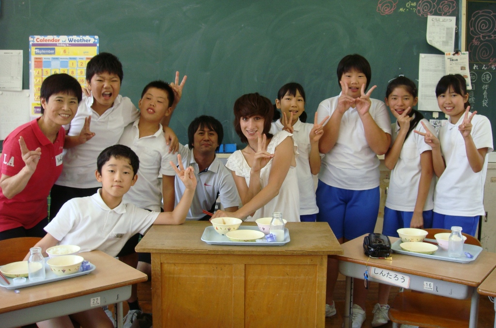 22歳、身長174cm、明るく積極的なミリ先生のことがみんなはいっぺんに大好きになりました。給食は、6年教室で一緒に食べられました。一緒に話ししながら、卵焼きもご飯も、すき焼きおいしかったそうです。次回からの英語活動が待ち遠しいです。