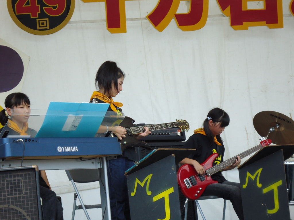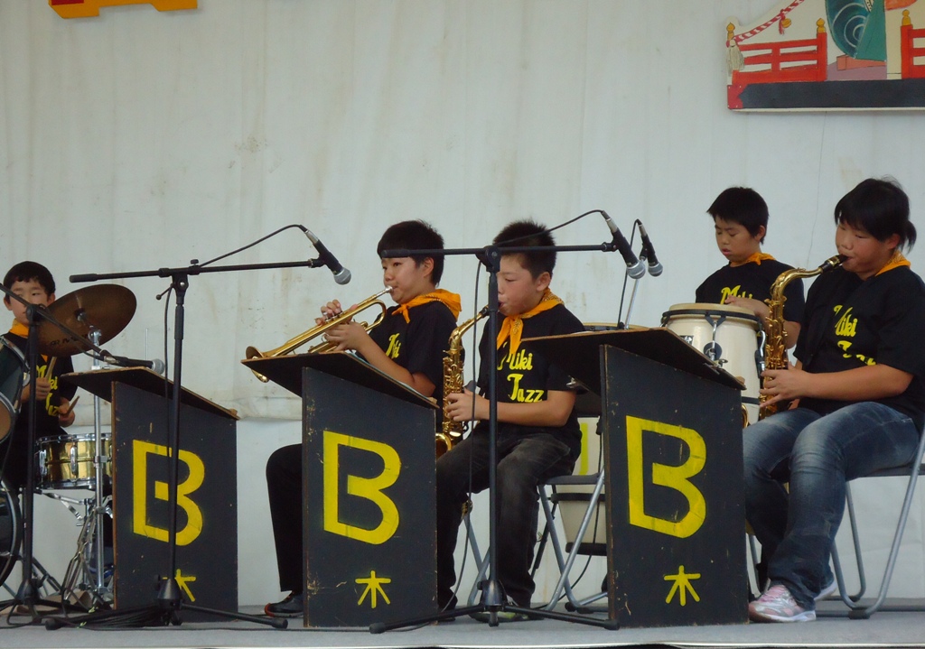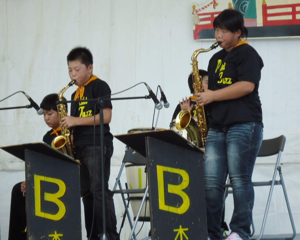 文化祭には学年の出し物のほかに、3~6年生の習字の作品や、1~6年生が図工で作ったいろんな作品が展示されています。発表の後、バザーや抹茶や、品評会が開かれます。カレーを食べるところや、豚汁を食べる所もあります。あんまりjazz.JPG遅い