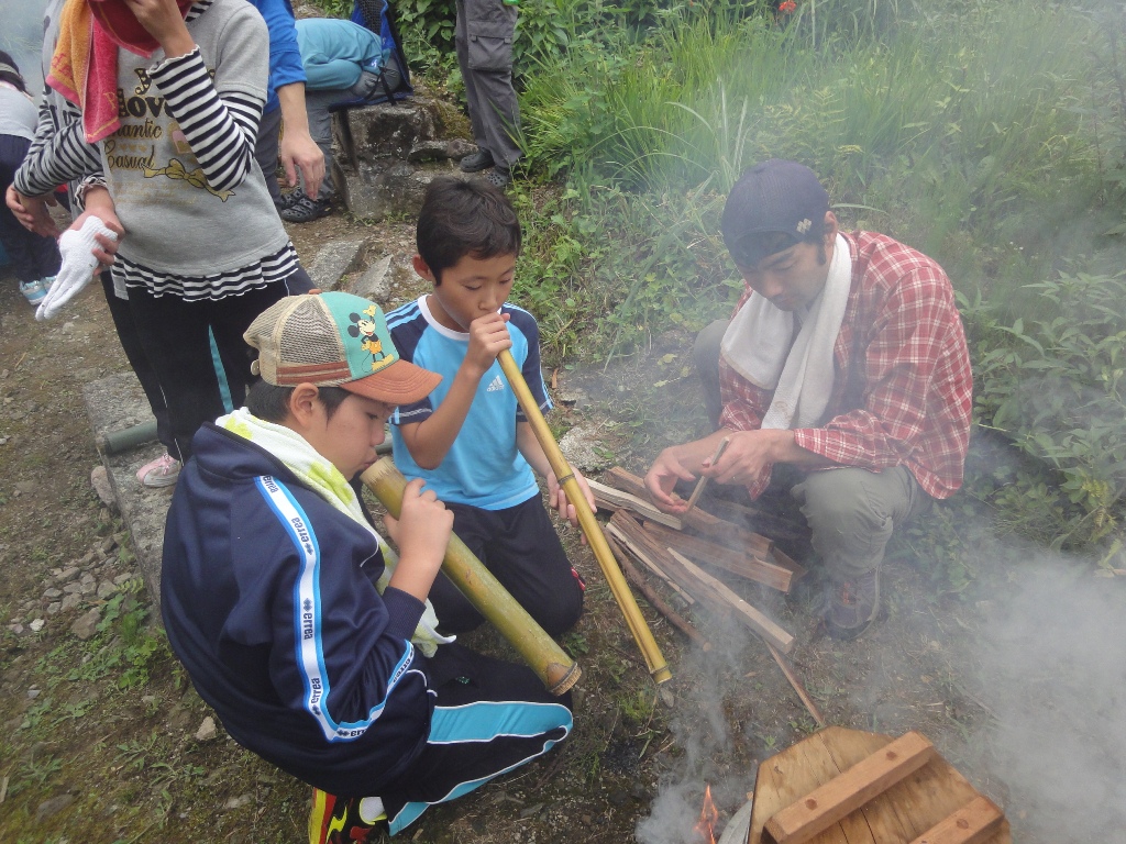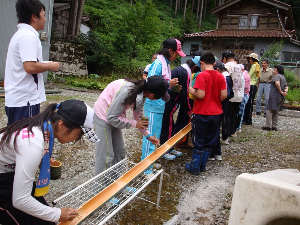 棚田に古民家が数件立ち並び、清らかな水の音と小鳥の声しか聞こえない緑豊かな風景に子ども達はゆったりと自然を満喫できました。