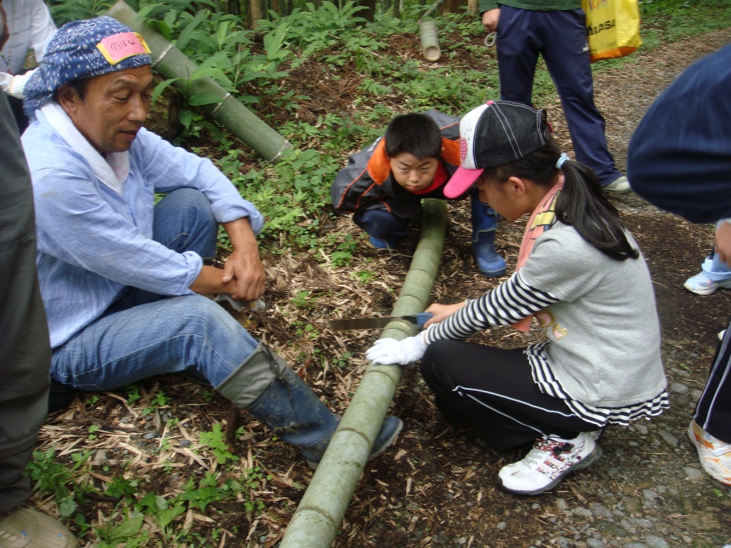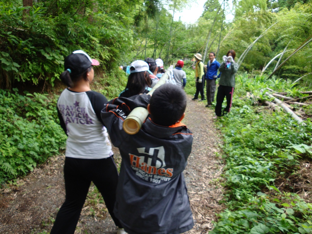 近くの竹やぶに、手ごろな竹を切りに行きました。