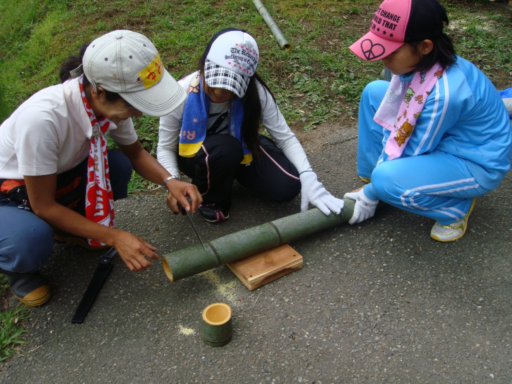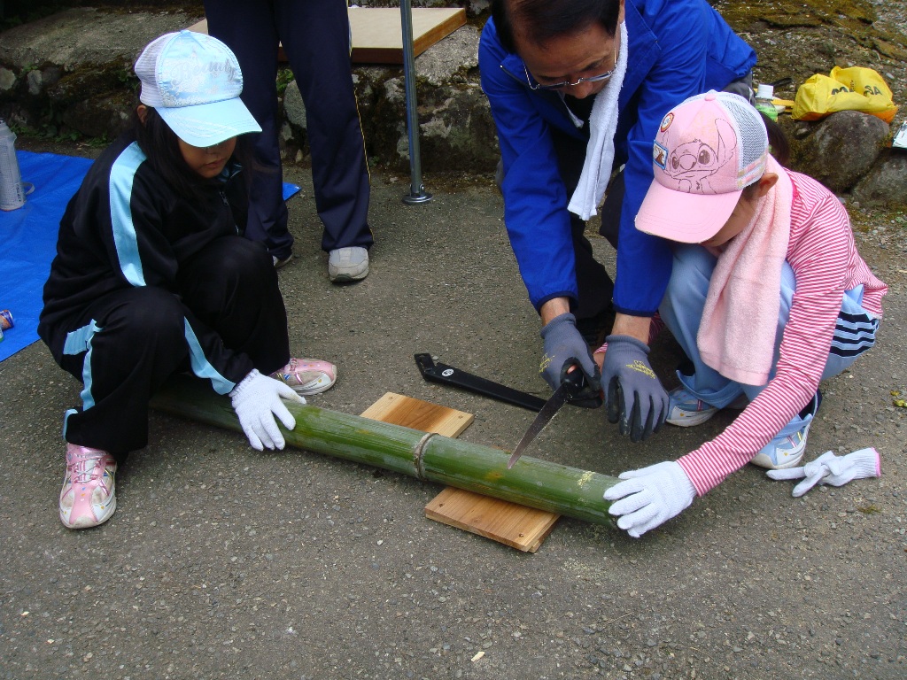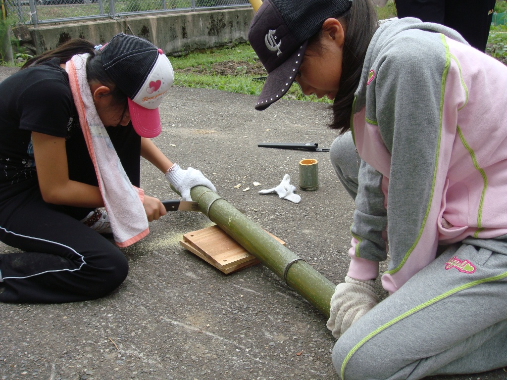 竹でマイお椀とマイ箸を、切り出しナイフやのこぎりを使って作りました。