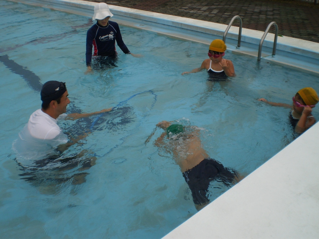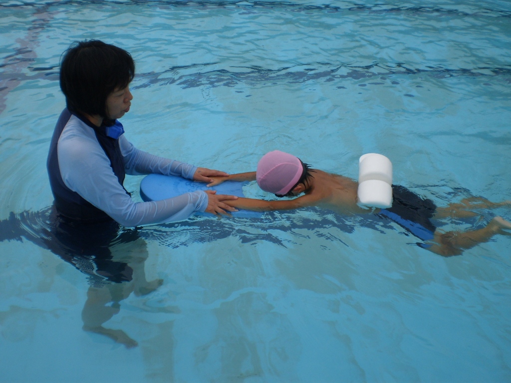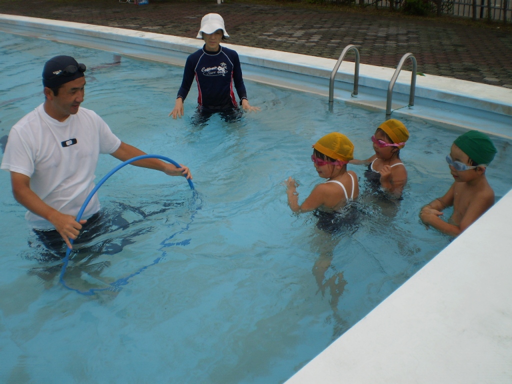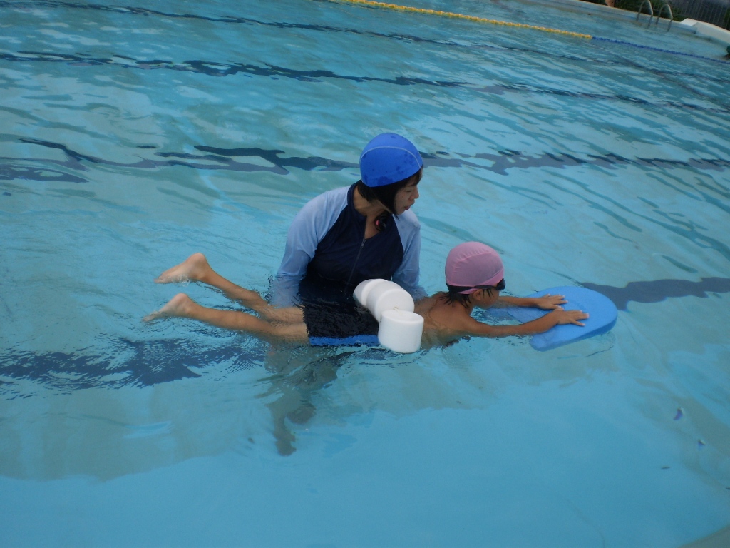 1.2.3年生の初心者水泳教室は、担任の先生とマンツーマンで頑張りました。