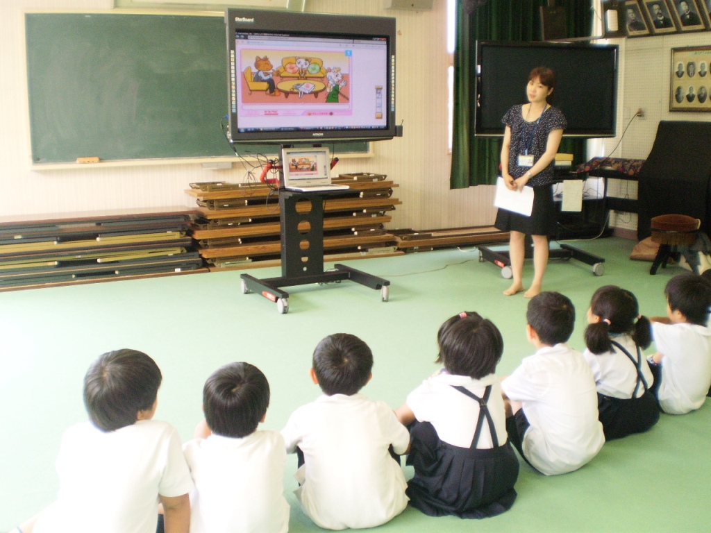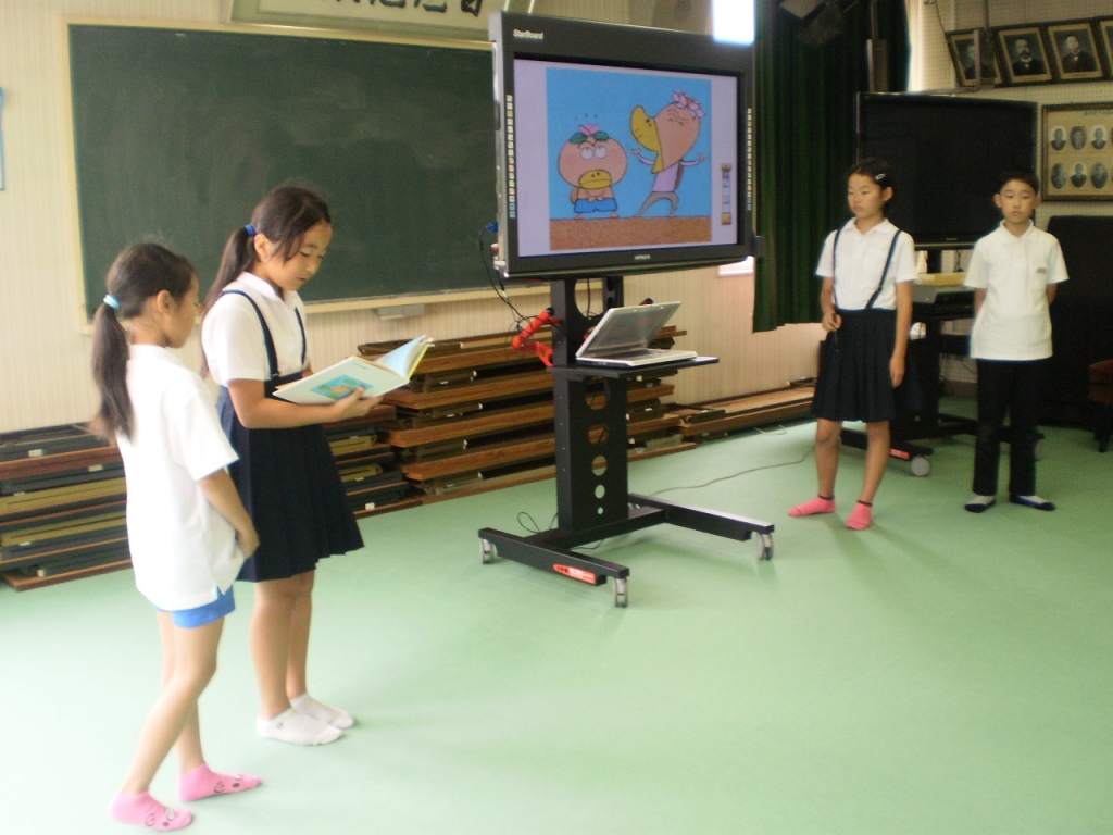 図書委員会が昼休みに、電子黒板を利用して絵本の読み聞かせをしました。