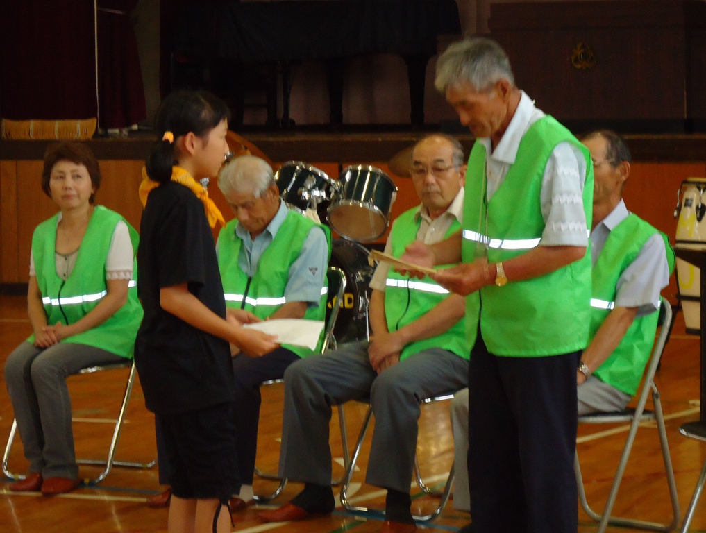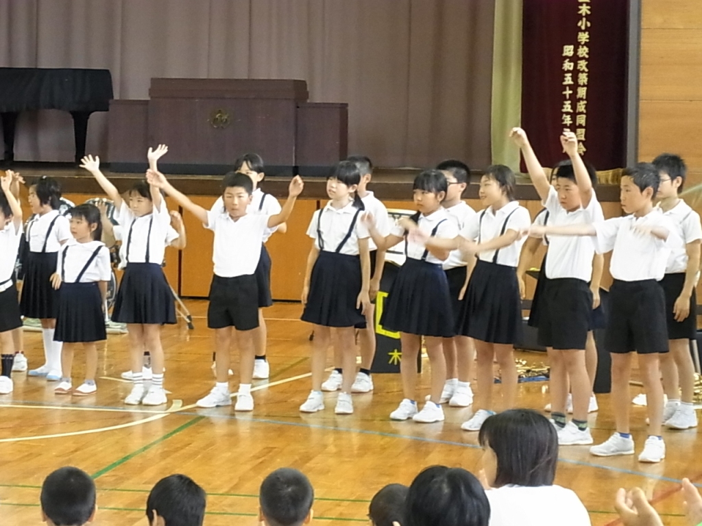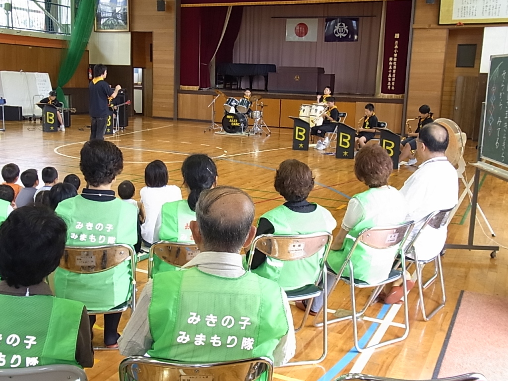 見守り隊、地域の皆さん、保護者の皆さん方の前で、最後まで演奏し大きな拍手を頂きました。これを自信に、次は2曲目の練習に向けて頑張ります。