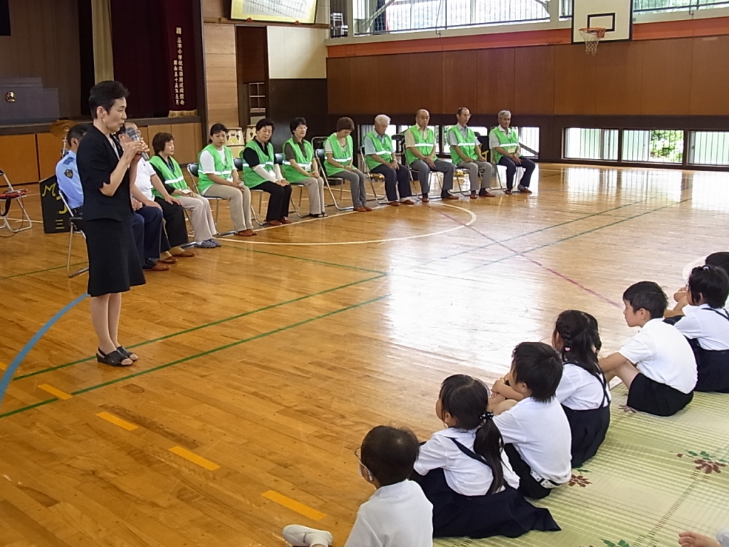 三木小学校の通学区域は、大変広範囲で交通の激しい道路や、人通りが少なく危険な場所などがあります。見守り隊の方々のおかげで、事故もなく安全に登下校が出来ています。