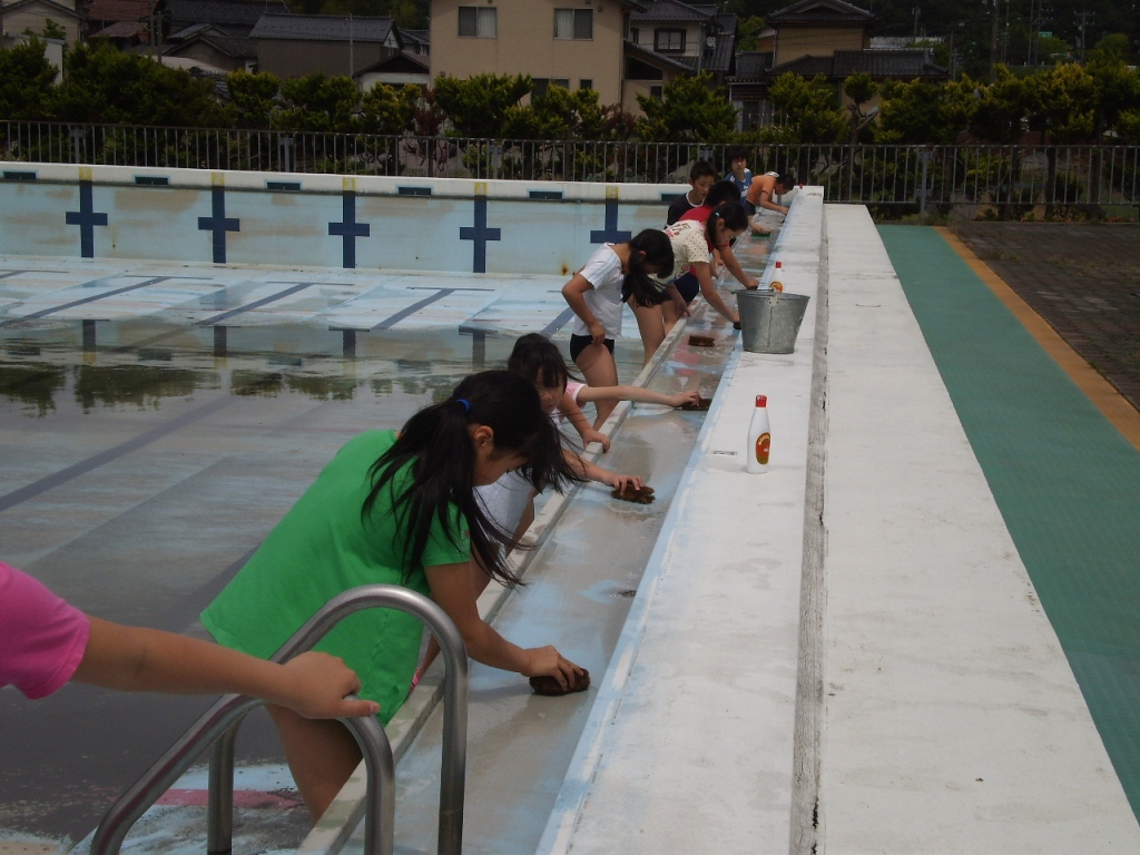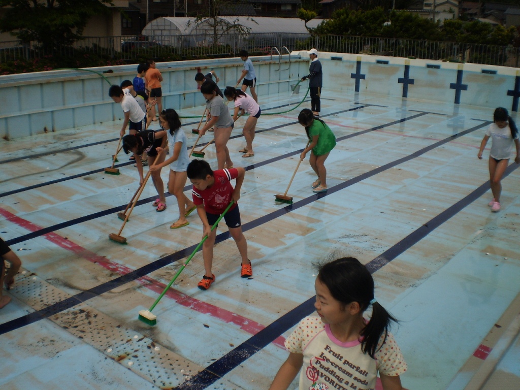 みんな、青く輝く水の張ったプールを想像しながら力を合わせて一生懸命掃除しました。