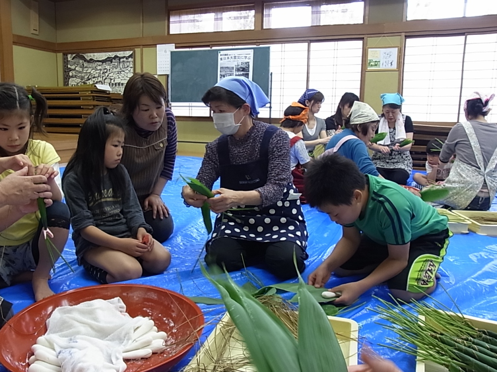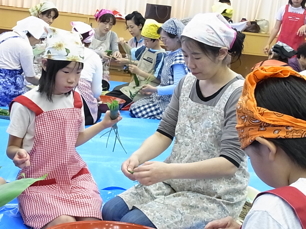 地域の方と児童が一緒に作りました。お菓子屋さんで売っている「ちまき」は食べたことがありますが、実際に自分で作るとなるとなかなか難しかったようです。