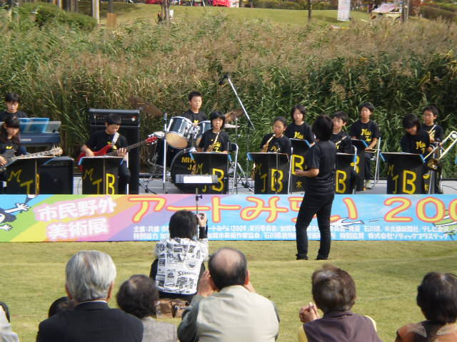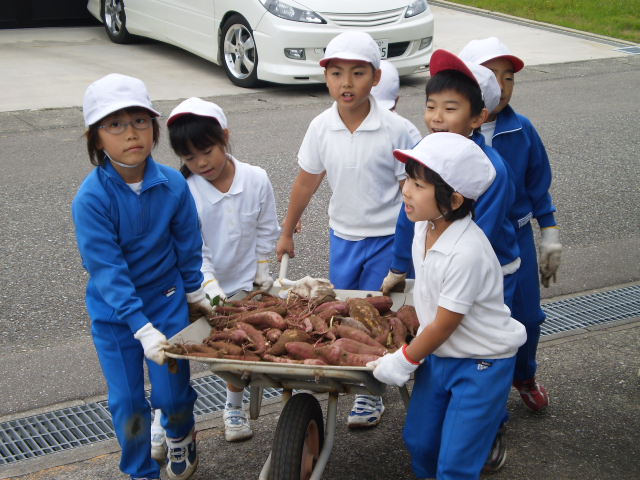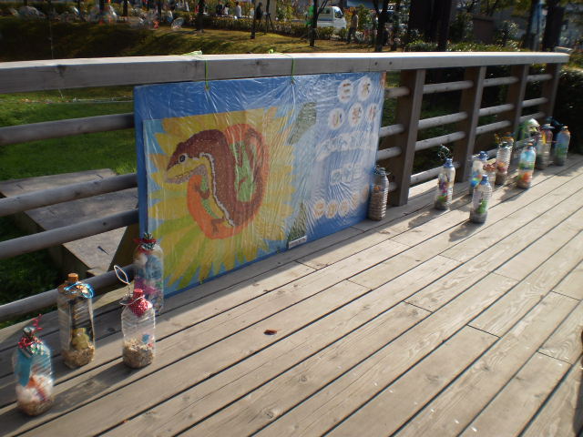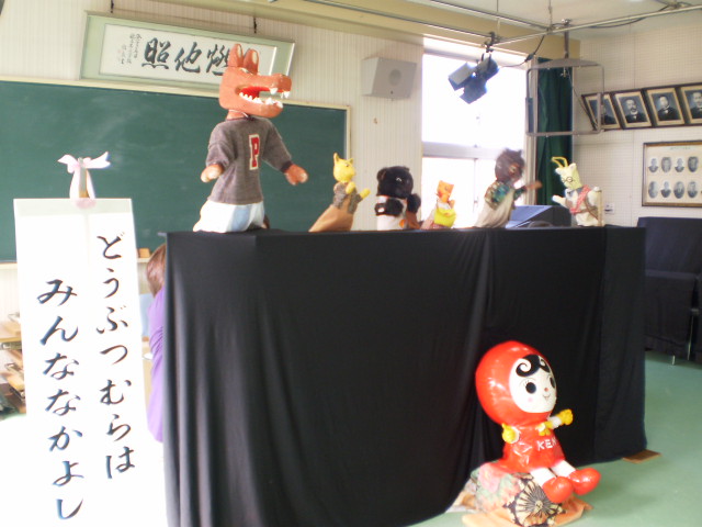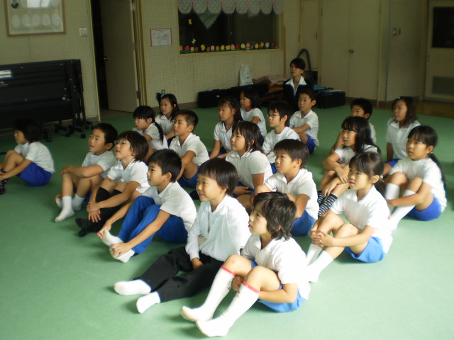 文化祭には学年の出し物のほかに、3~6年生の習字の作品や、1~6年生が図工で作ったいろんな作品が展示されています。発表の後、バザーや抹茶や、品評会が開かれます。カレーを食べるところや、豚汁を食べる所もあります。あんまり遅いと