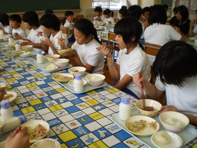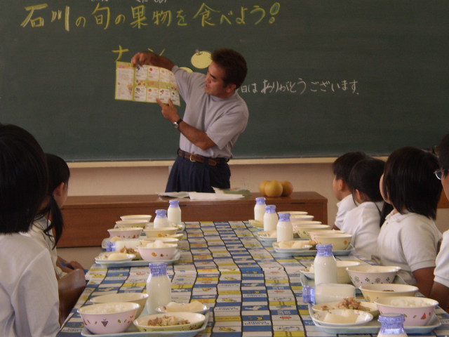 バランス良い食事をとるために、「毎日旬の果物を200g食べましょう」というキャンペーン事業の一つとして、奥谷町の梨農家、奥村さんが、お話をして下さいました。そして、給食に豊水梨が付き、帰りに一人に一個ずつ家に持って帰りました。 三木地区は、県下でも有数の梨生産地です。そんな旬の梨を毎日摂って、丈夫で健康な体で過ごしてほしいです。 今は、梨、ぶどう、いちじくが旬ですね。これから、みかんやりんご、柿なども出てきて「食欲の秋」真っ盛りです。地産地消を心がけ、旬の果物をこれからもできるだけ摂取していきたいものです。