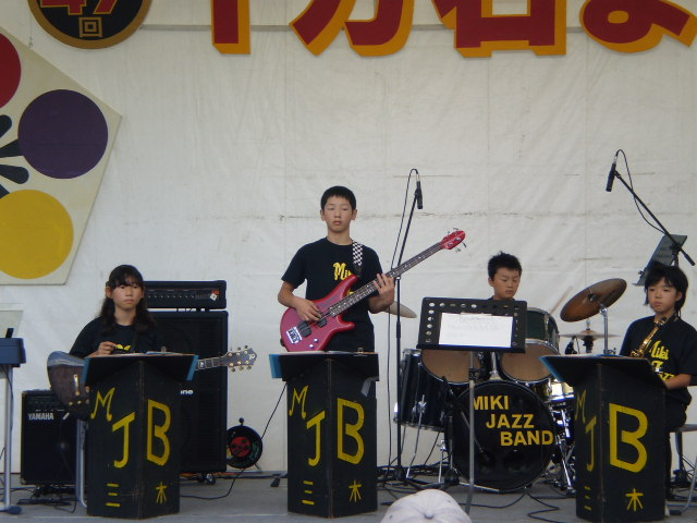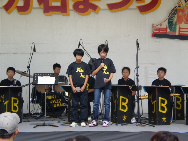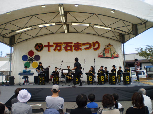 13日(日)の十万石祭に、三木小学校ジャズバンドが出場しました。観衆の前で、演奏するのは、これで4回目です。回を重ねるごとに、自信が付き6年生12名は、堂々と演奏していました。観客の方々から、大きな拍手をもらい、満足そうでした。