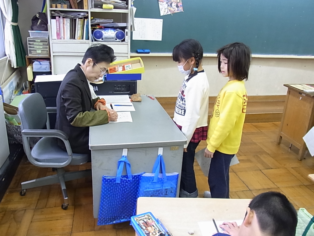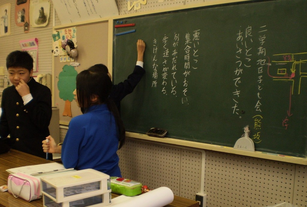 冬休みを前に、地区子ども会をしました。会長さんの司会で、集団登校の反省、挨拶の振り返り、危険個所、行事などについて話し合いました。熊坂地区では、昨年大雪が降り通学路が通れなかった時のことなどが出ました。今年の雪はどうでしょうか。大雪にならないことを願っています。