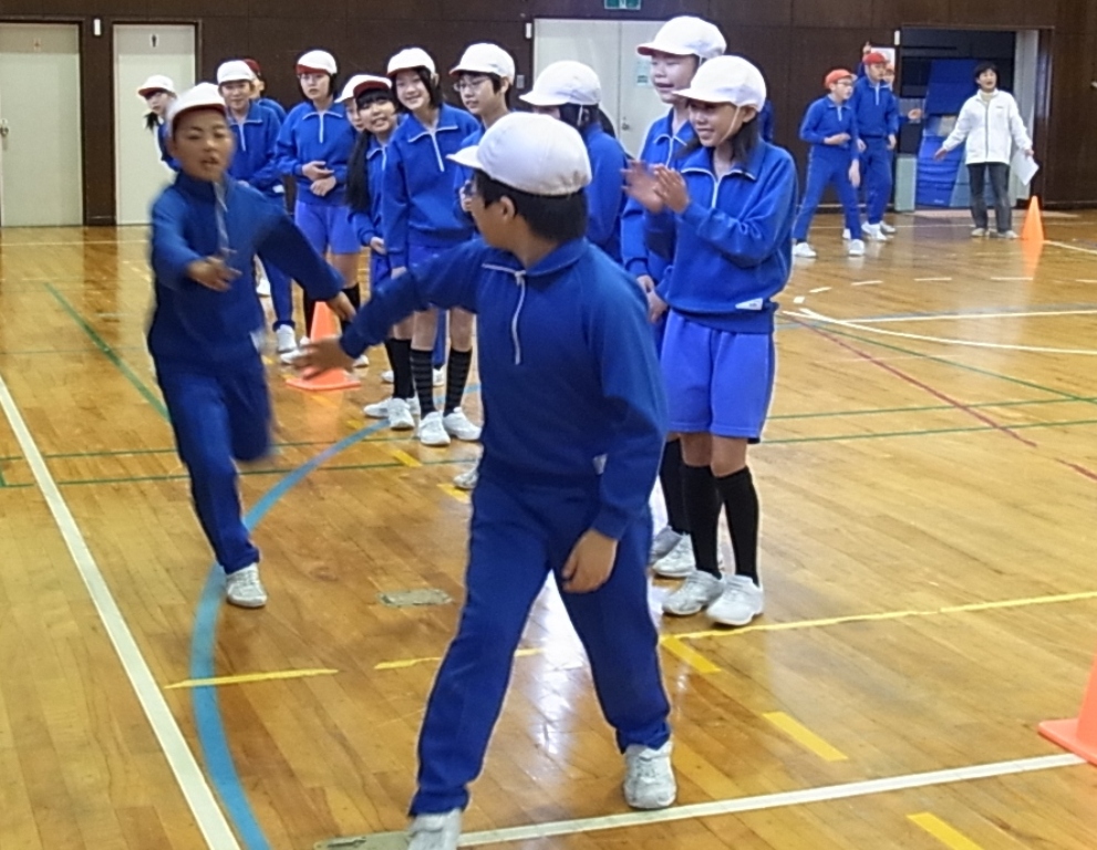バトンを手渡し一人ずつ40mリレーだよ。前回よりもあがったかな?