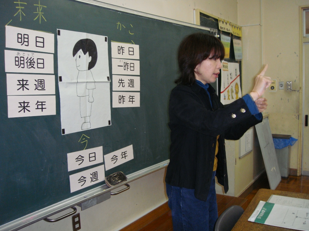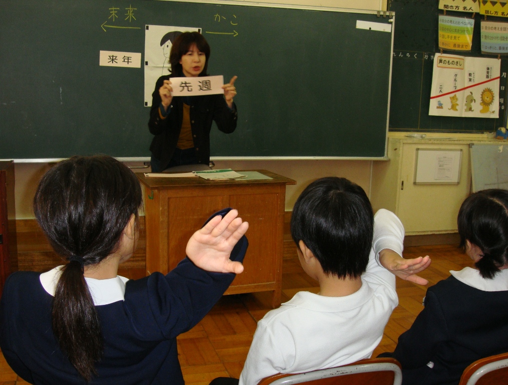 回を重ねるごとに3年生は手話に慣れてきました。今回は、過去・現在・未来の時を表現する手話を習いました。昨日、一昨日、今日、明日、明後日。昨年、今年、来年や曜日など基本を応用すればいろいろな手話が表現できることが分かりました。