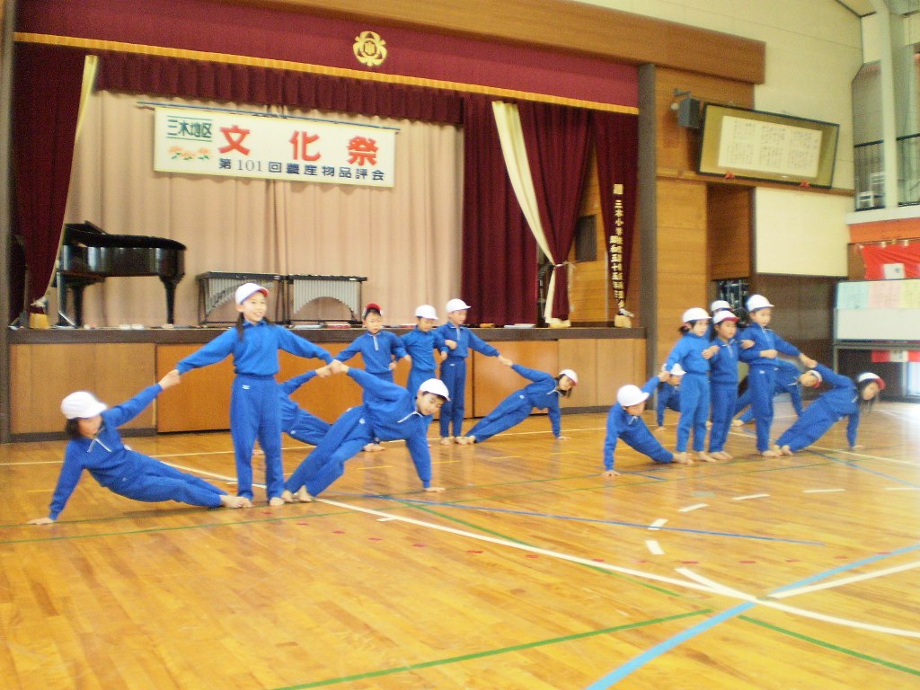 文化祭には学年の出し物のほかに、3~6年生の習字の作品や、1~6年生が図工で作ったいろんな作品が展示されています。発表の後、バザーや抹茶や、品評会が開かれます。カレーを食べるところや、豚汁を食べる所もあります。あんまりjazz.JPG遅い