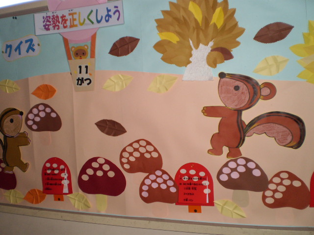 毎月、養護の先生は、季節感ある素敵な掲示で子どもたちの意識付けをしています。