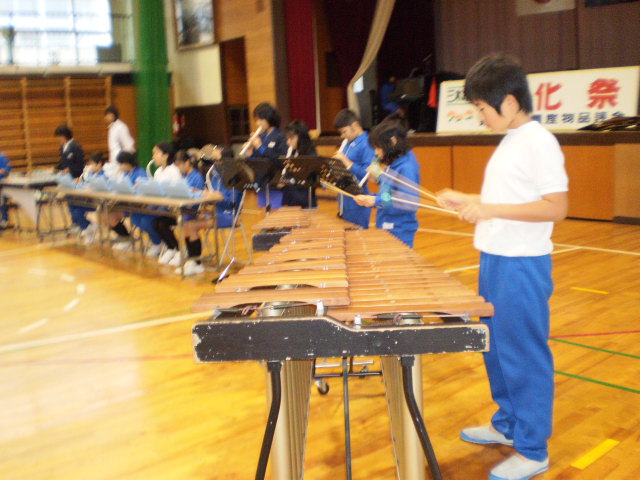 文化祭には学年の出し物のほかに、3~6年生の習字の作品や、1~6年生が図工で作ったいろんな作品が展示されています。発表の後、バザーや抹茶や、品評会が開かれます。カレーを食べるところや、豚汁を食べる所もあります。あんまりjazz.JPG遅い