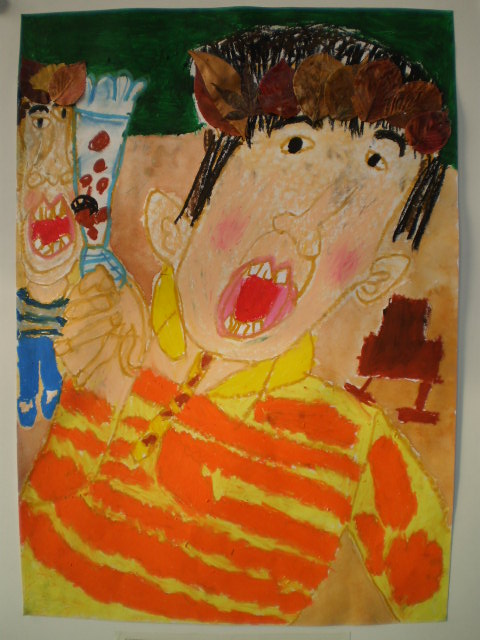 中でも、1年「おちばの音楽会」(右側作品)と