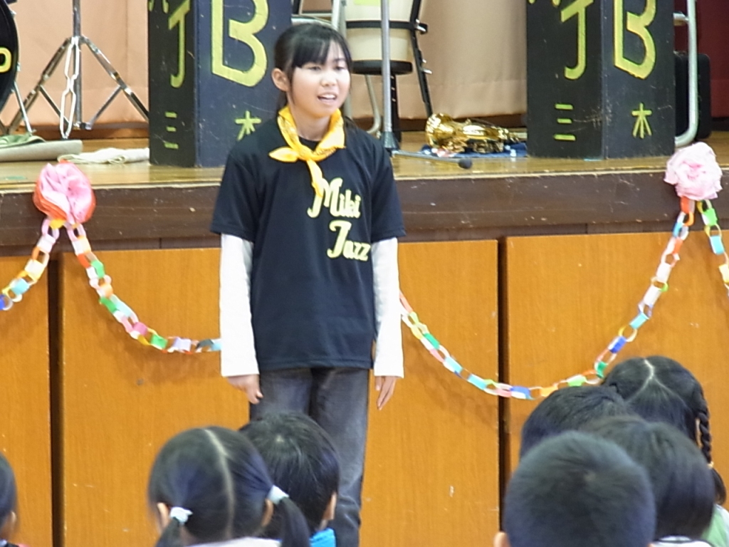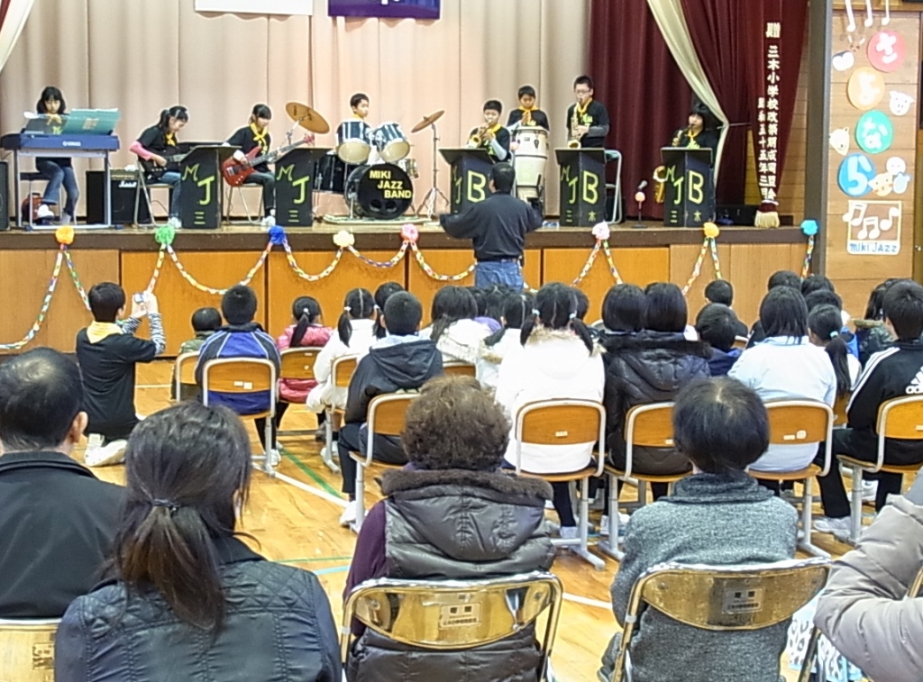 三木小学校のジャズは昭和56年から始まり、今年で31年間伝統的に継続されています。6年生になったら、全員でやるのです。ピアニカとリコーダーしか持ったことのない子たちです。たった半年間で、ドラムを操り、ベースやギターを弾くまで成長します。できないことも、努力すれば必ずできること、仲間と協力すること、周りの人々に感謝すること・・・・。今日の6年生の顔は、自信と喜びでいっぱいでした。