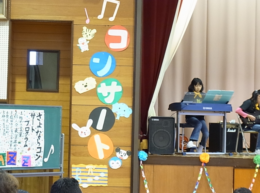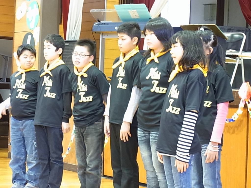 文化祭には学年の出し物のほかに、3~6年生の習字の作品や、1~6年生が図工で作ったいろんな作品が展示されています。発表の後、バザーや抹茶や、品評会が開かれます。カレーを食べるところや、豚汁を食べる所もあります。あんまりjazz.JPG遅い